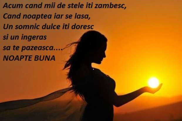 La lasarea noptii, iti trimit in fiecare seara iubirea mea, ea straluceste in fiecare stea. Noapte buna!