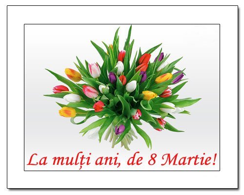 - Fie ca toate implinirile, sanatatea si spiritul acestei zile de 8 Martie sa va insoteasca pretutindeni!